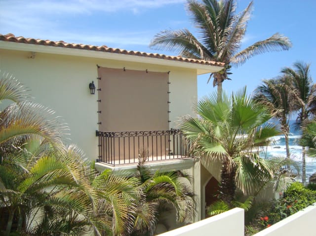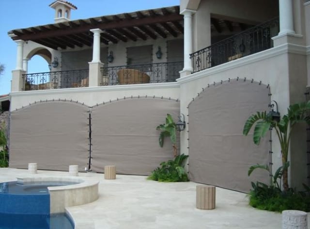 Excellent for odd shaped or large patio openings, it can be used where traditional shutters won’t fit. It is lightweight and can easily be deployed by one person. Available in black or beige, it can be folded and stored in the smallest of storage areas.